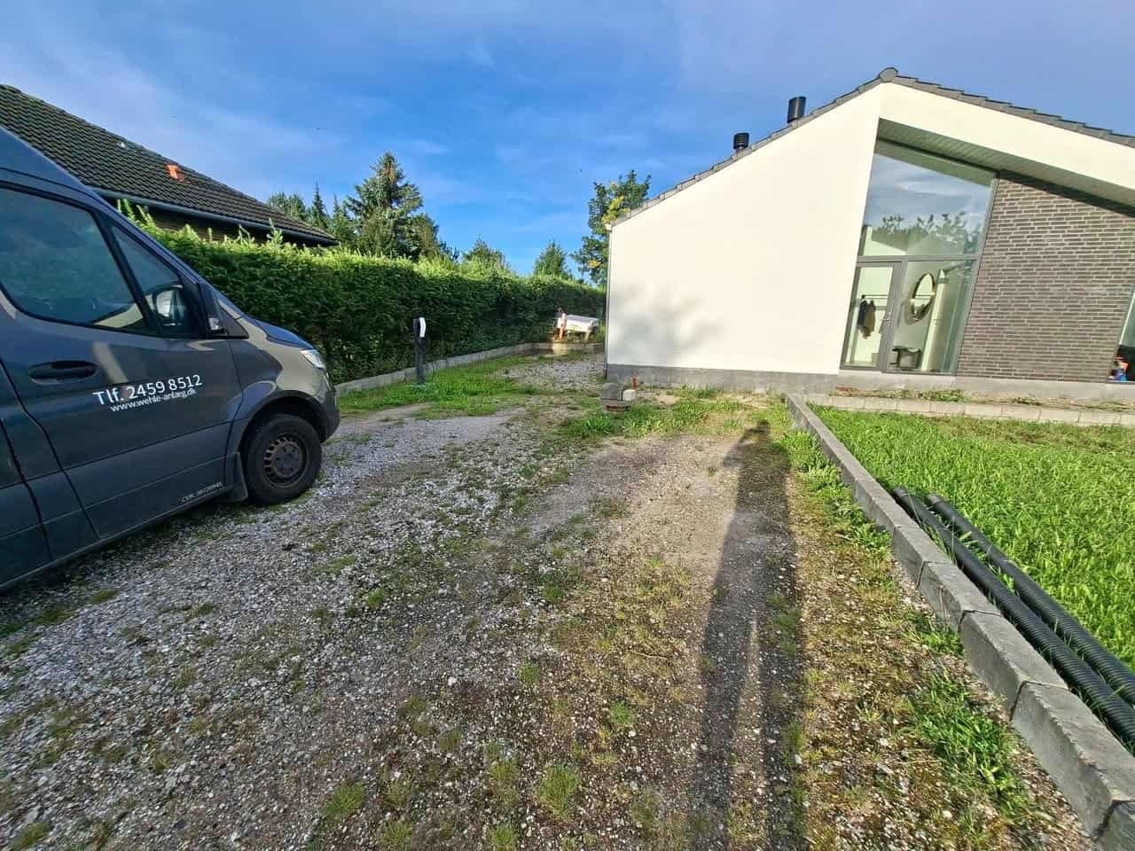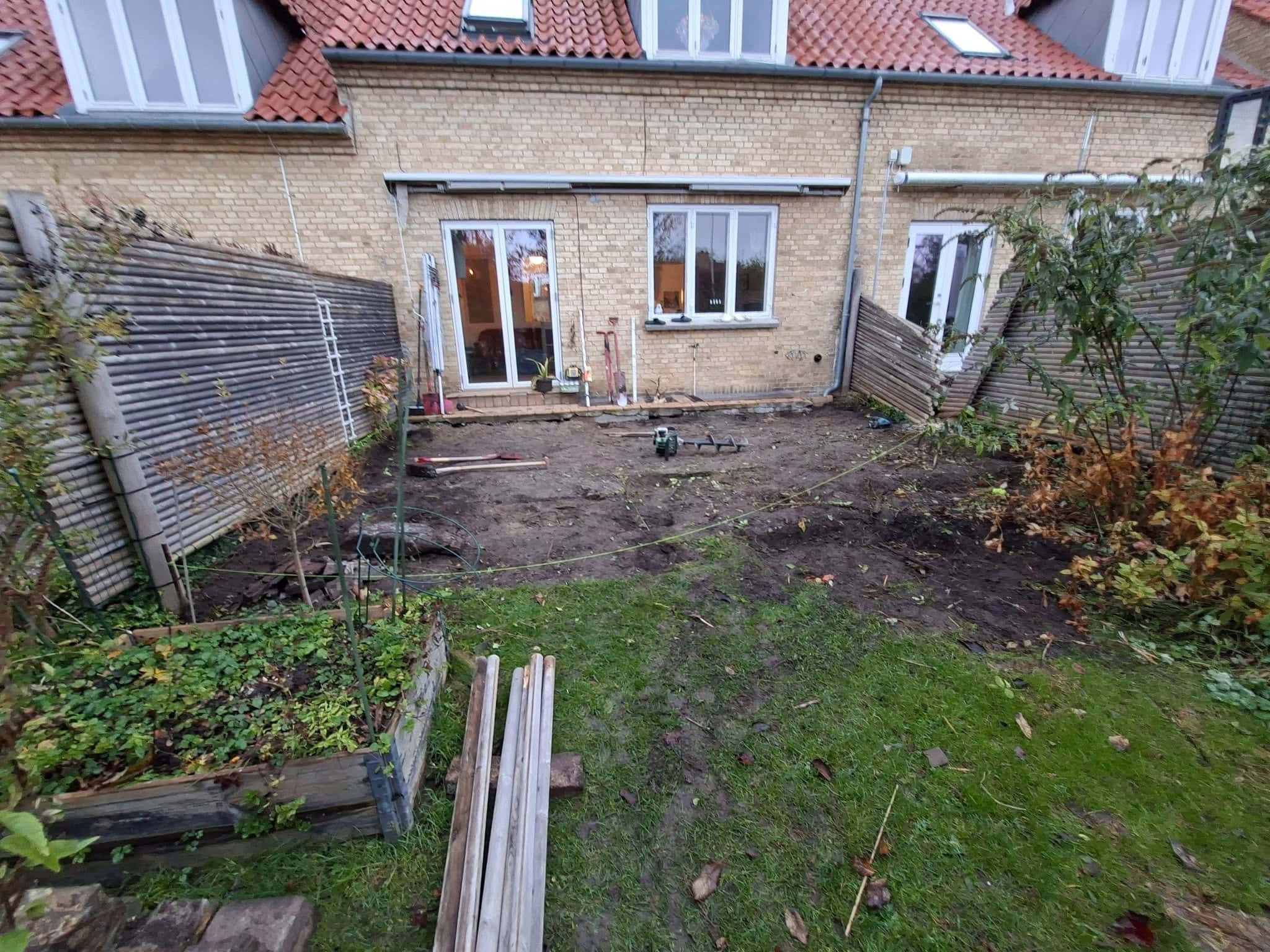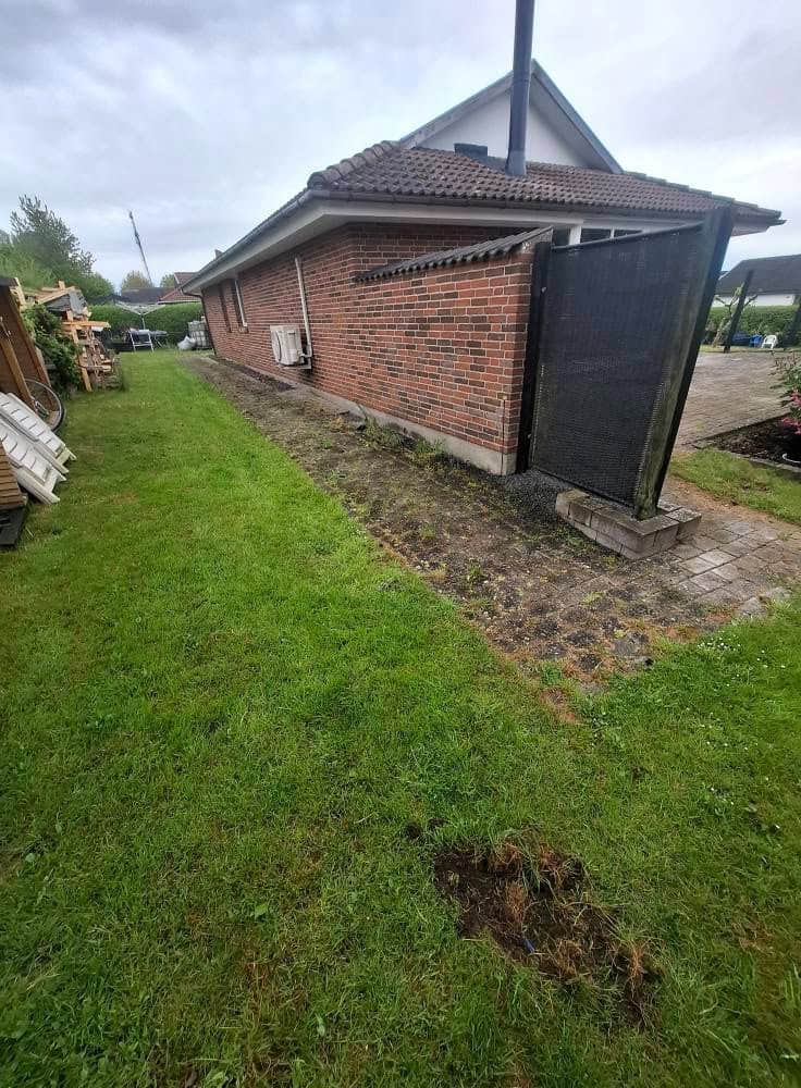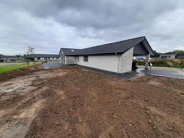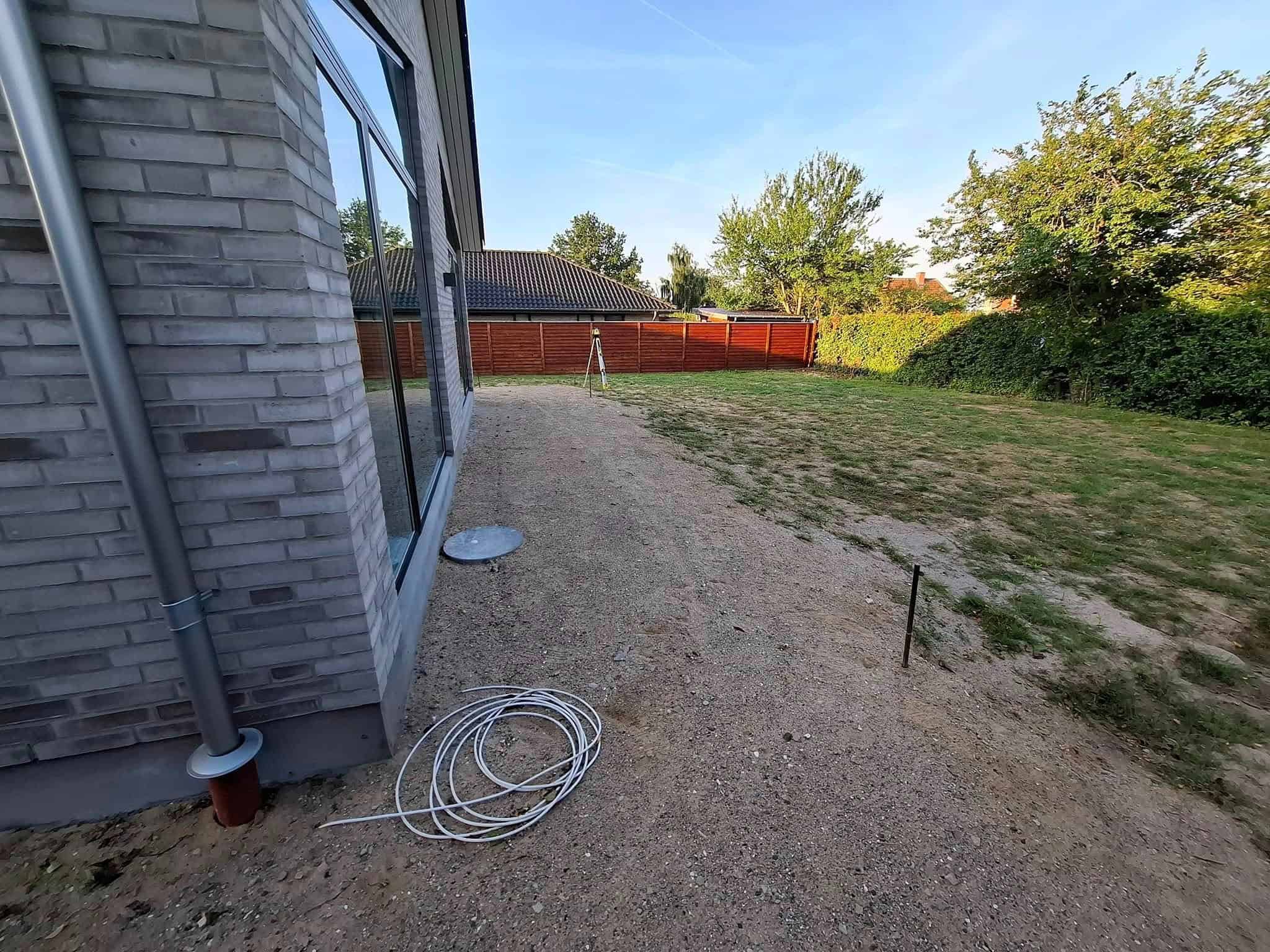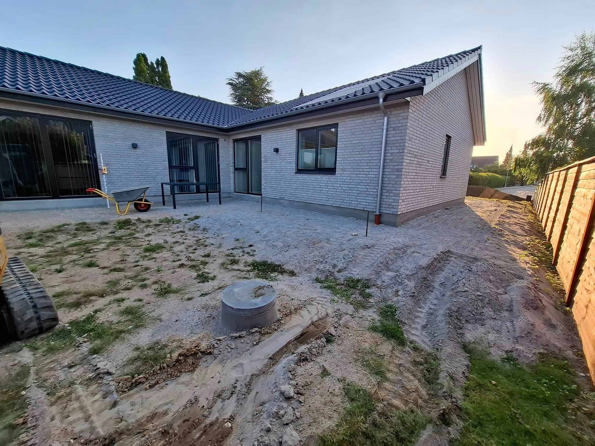 Så blev vi færdig med en total have i skævinge. Det er et stykke tid siden vi forlod området og tror kunden havde set frem til vi kom tilbage og fik sat hæk, planter samt lagt rullegræs.