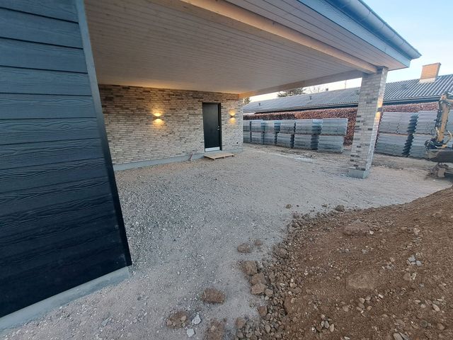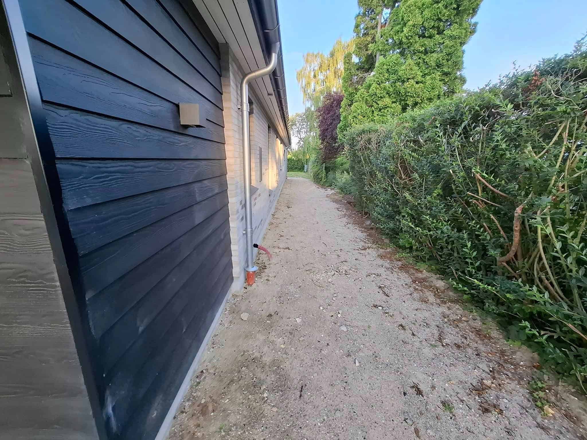 Langs huset bliver der fyldt op med granit skærver af kunden selv