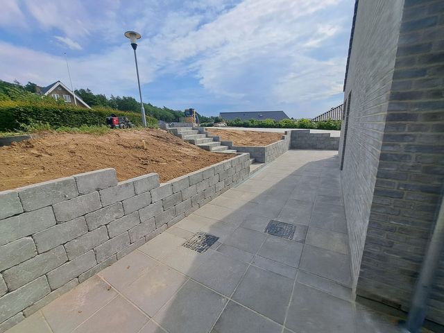 Støttemur mod naboen samt i forhaven pga. Niveau forskel.