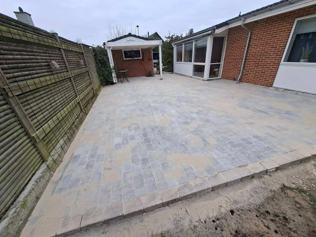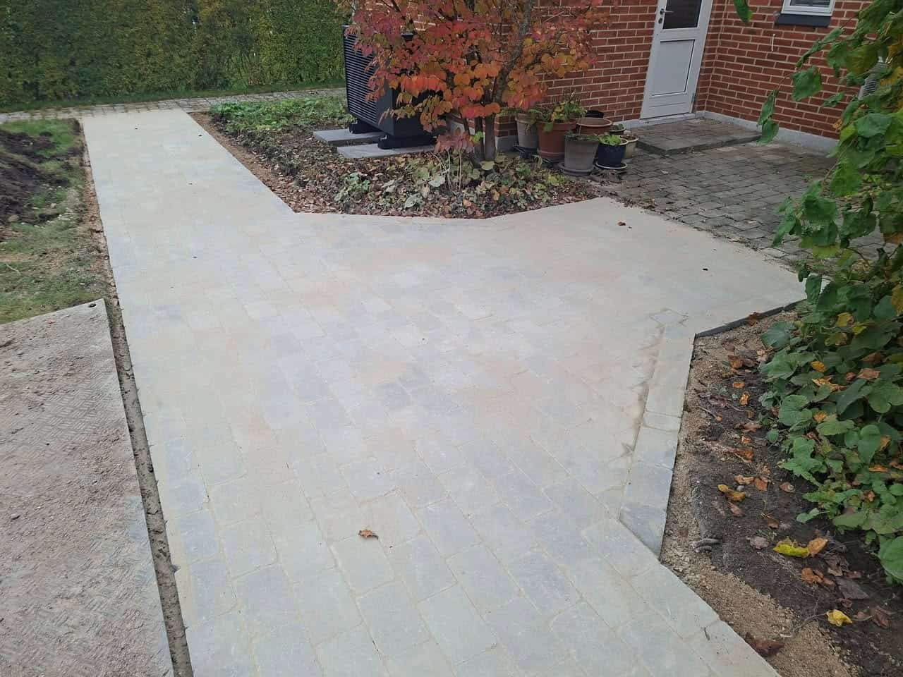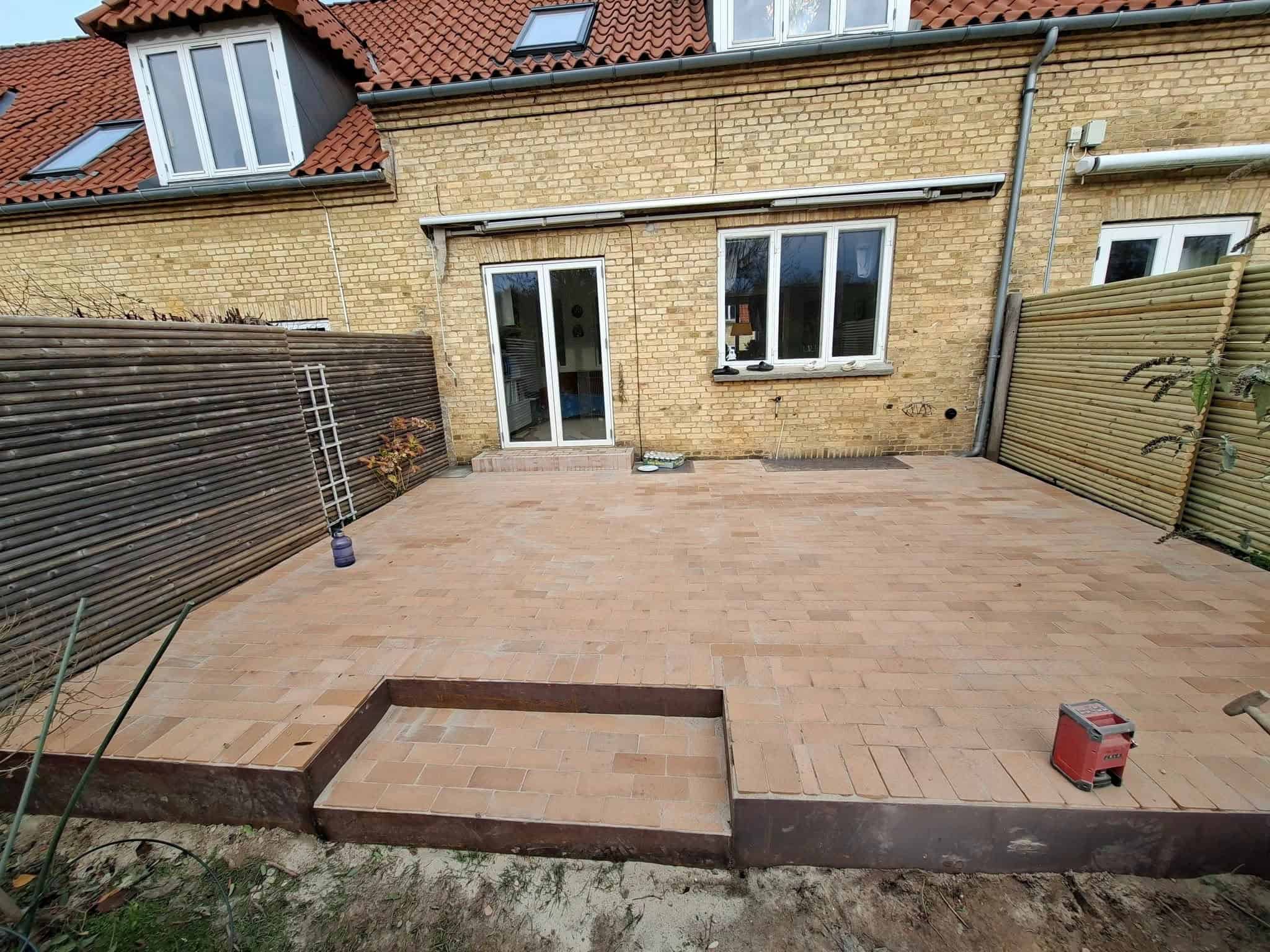 Belægning udført med tegl.