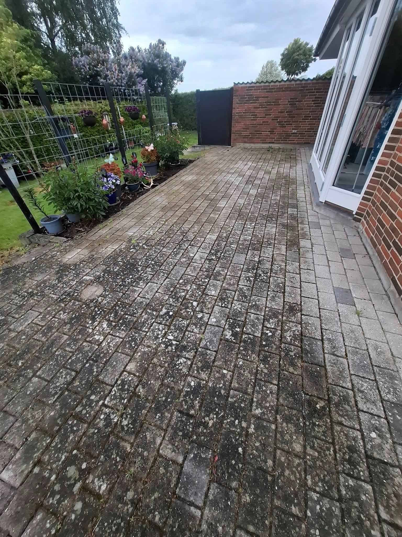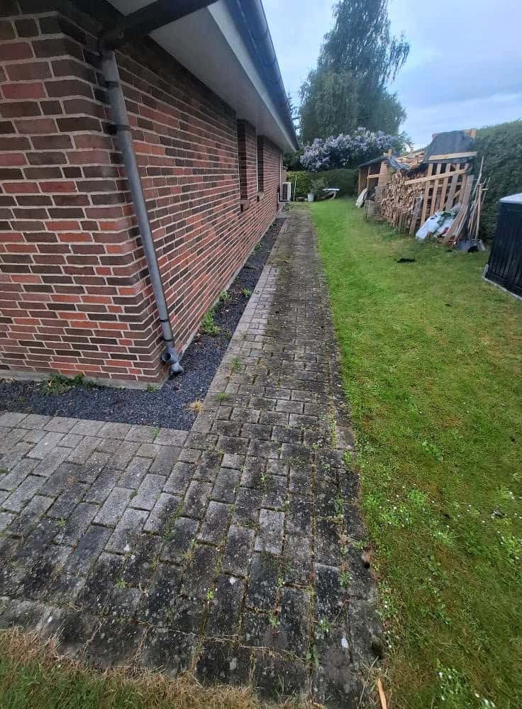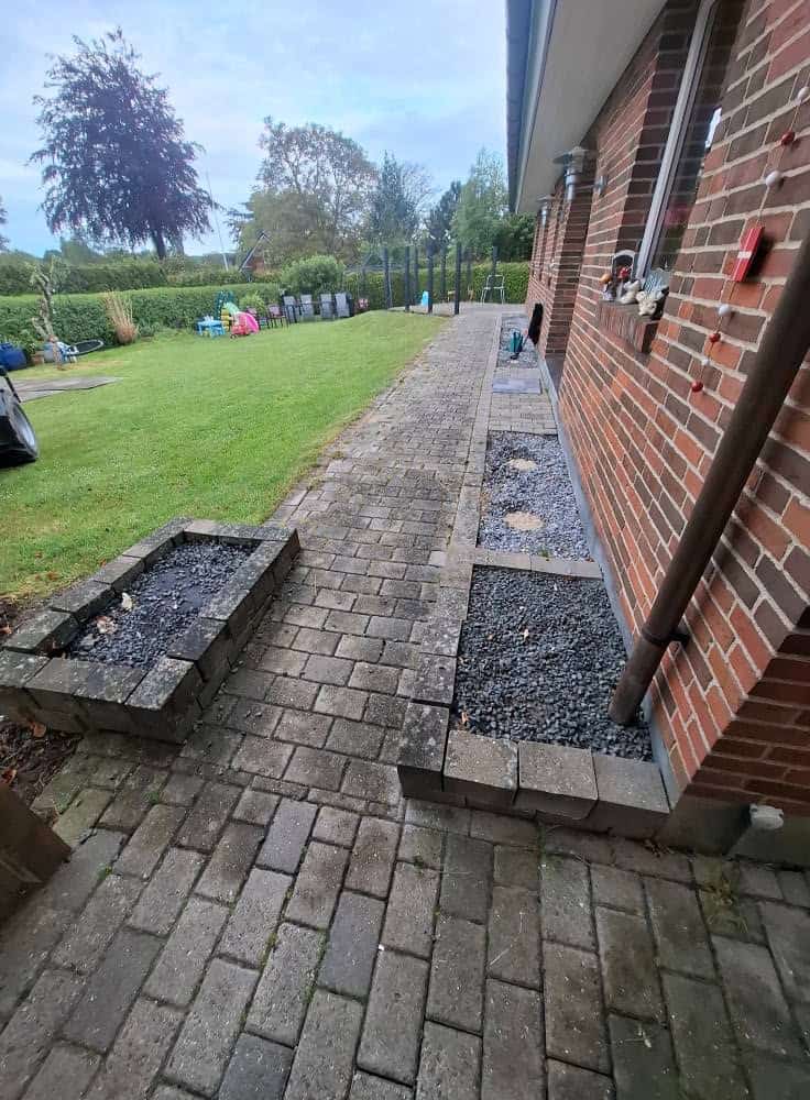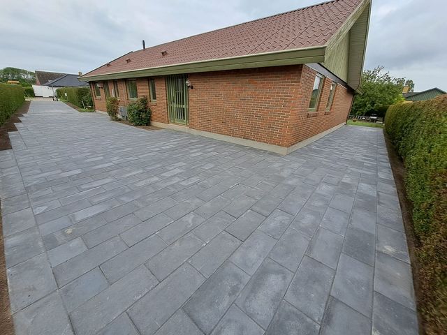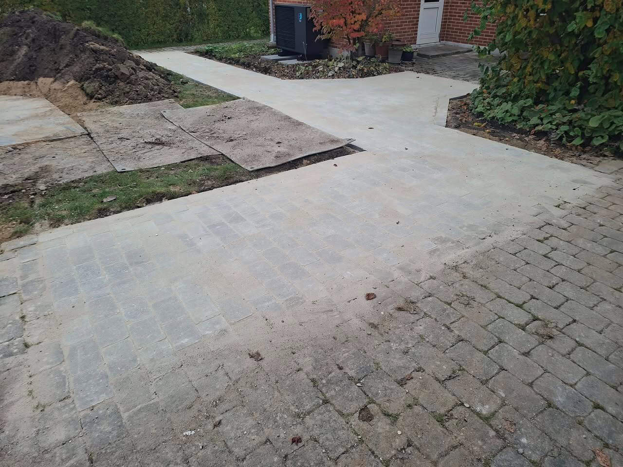 Belægning udført med tegl.