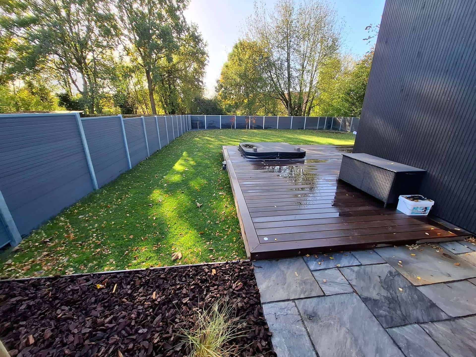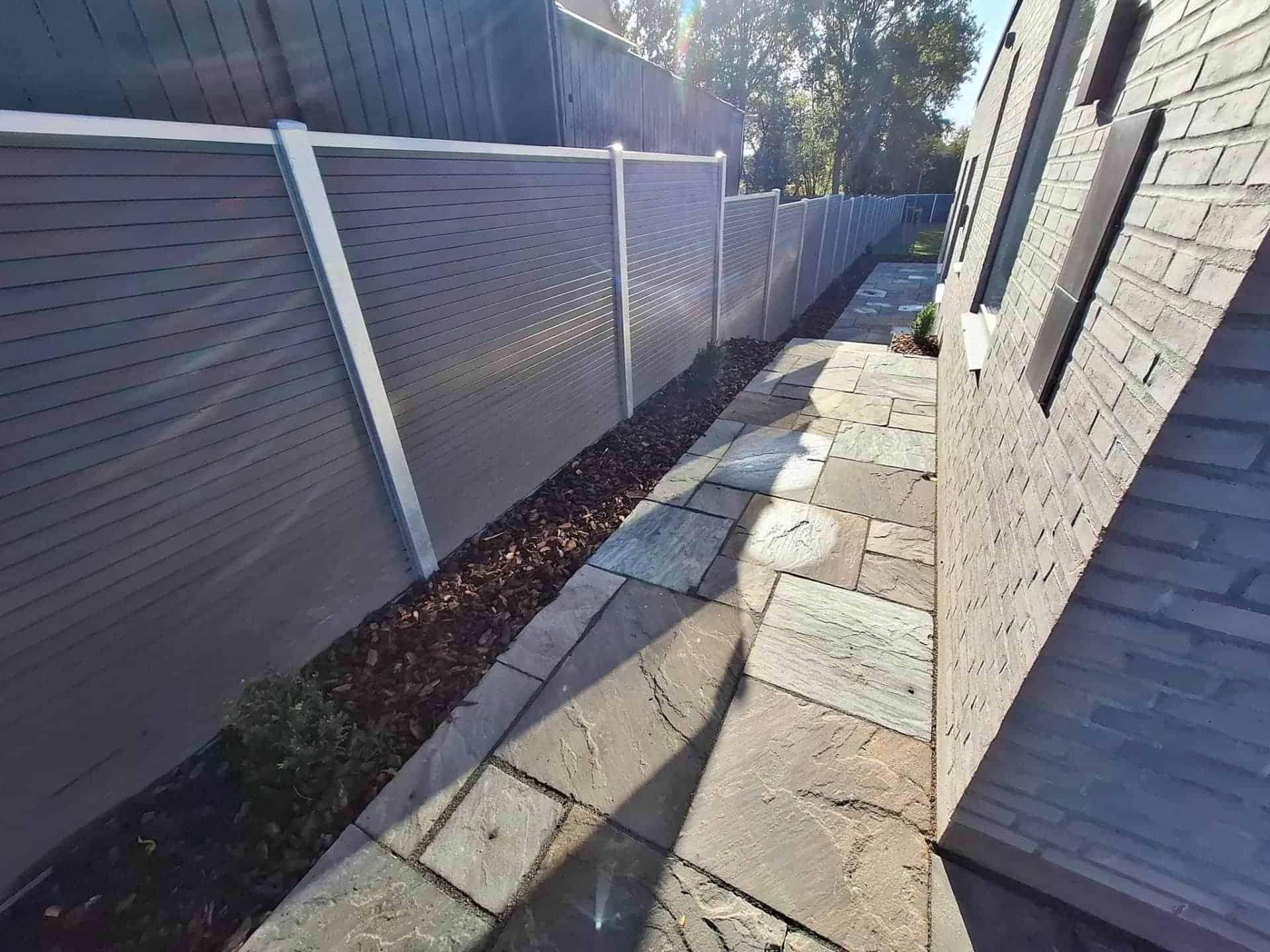 • 125 meter Hegn i komposit, med støttemur på den ene side mod nabo