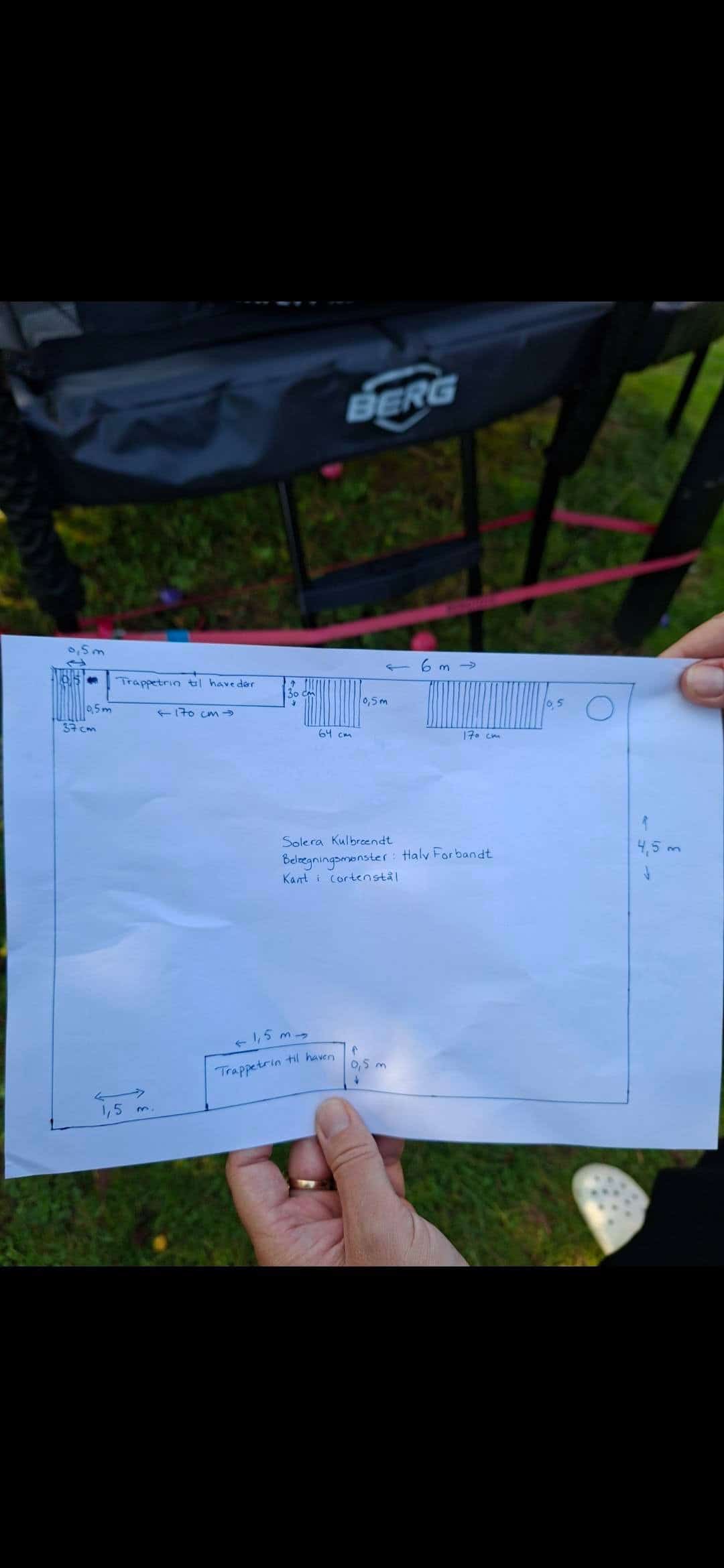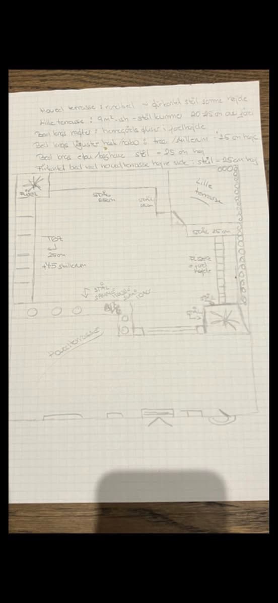 Papirs tegning fra kunden selv til en nu færdig ny have