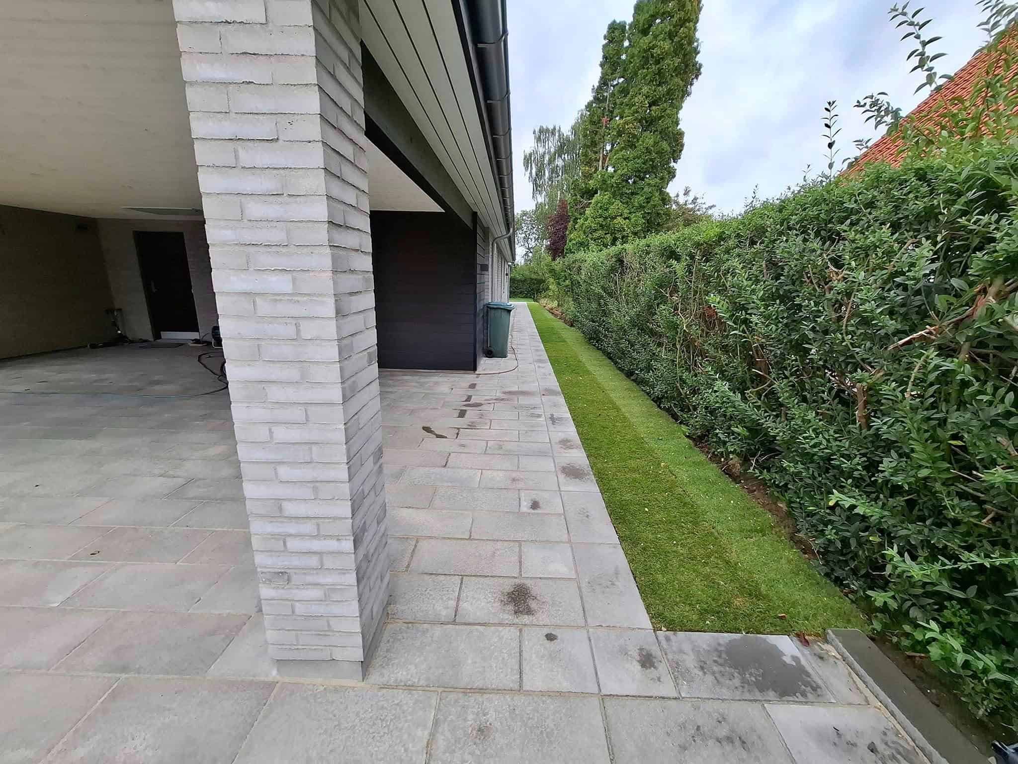 • 160 m2 belægning i sandstone dark i chelsea mønster med trappetrin